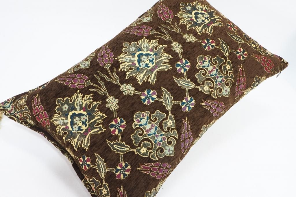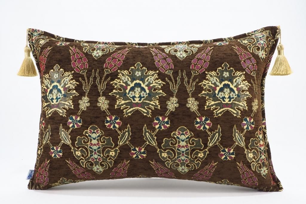 トルコファブリッククッション60x40cm ブラウン チューリップデザイン2