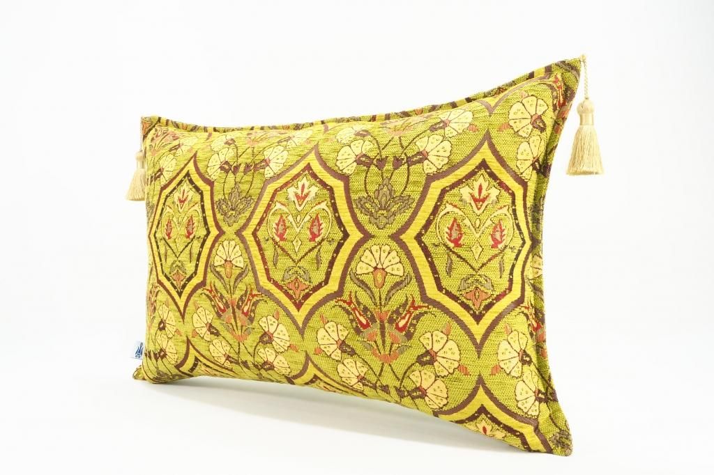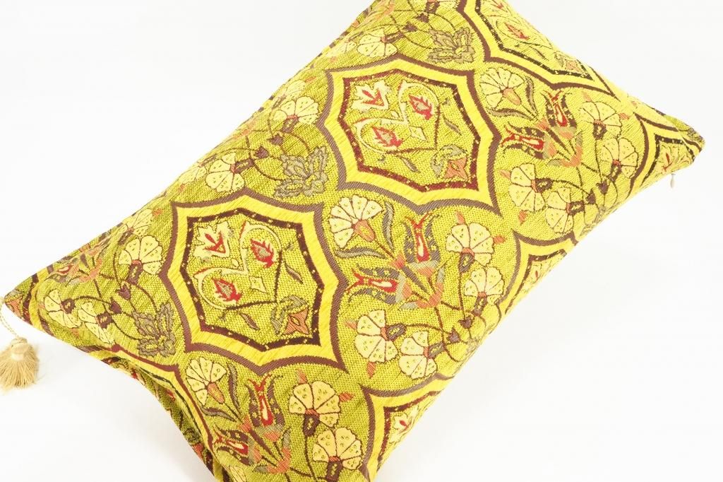 トルコファブリッククッション60x40cm グリーン カーネーションデザイン
