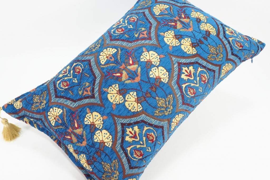 トルコファブリッククッション60x40cm ネイビー カーネーションデザイン