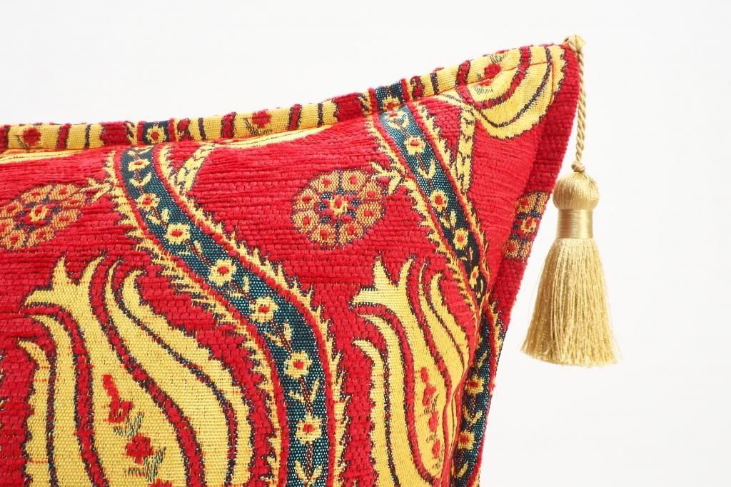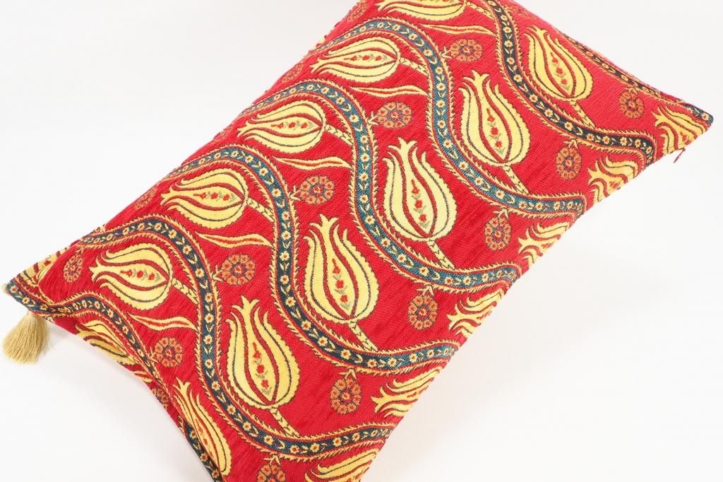 トルコファブリッククッション60x40cm レッド スウィングチューリップデザイン