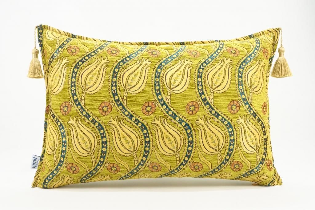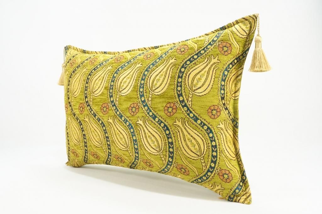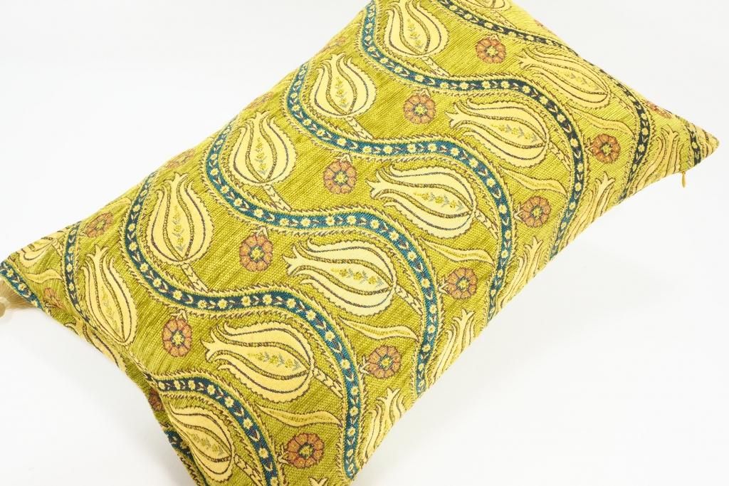 トルコファブリッククッション60x40cm グリーン スウィングチューリップデザイン