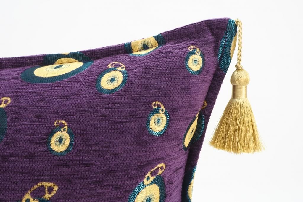 トルコファブリッククッション60x40cm パープル ナザールボンジュウデザイン