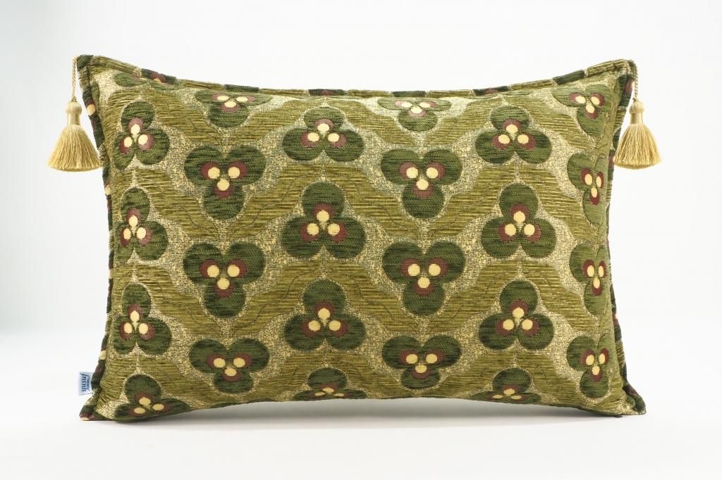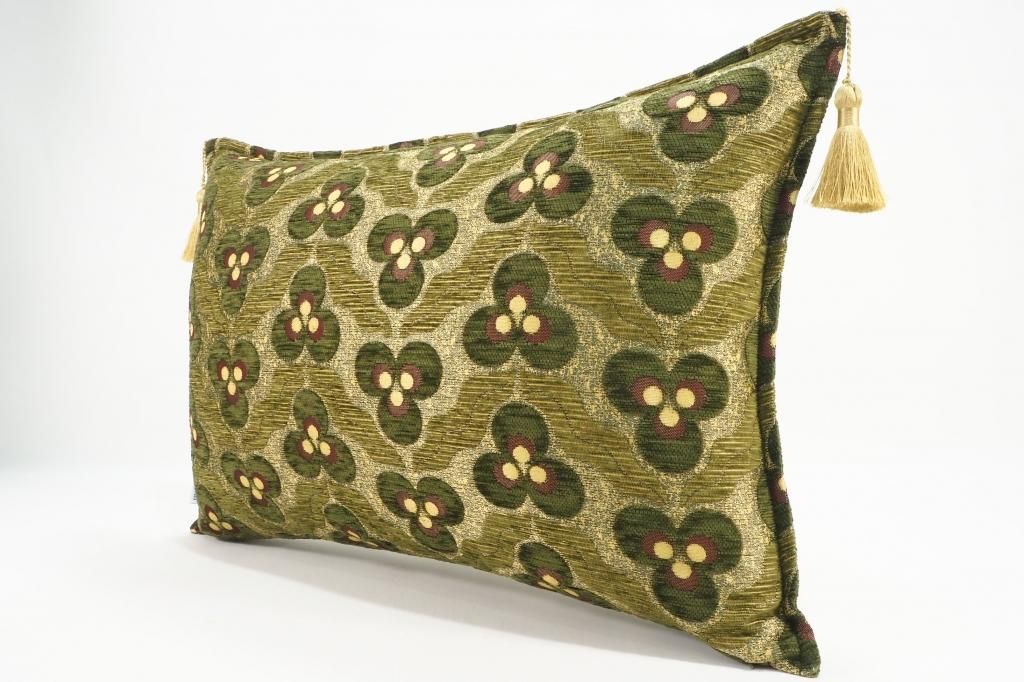 トルコファブリッククッション60x40cm モスグリーン チンテマニデザイン