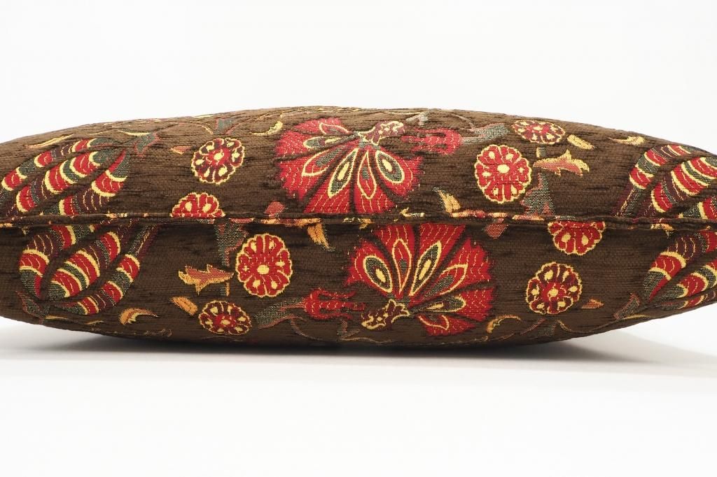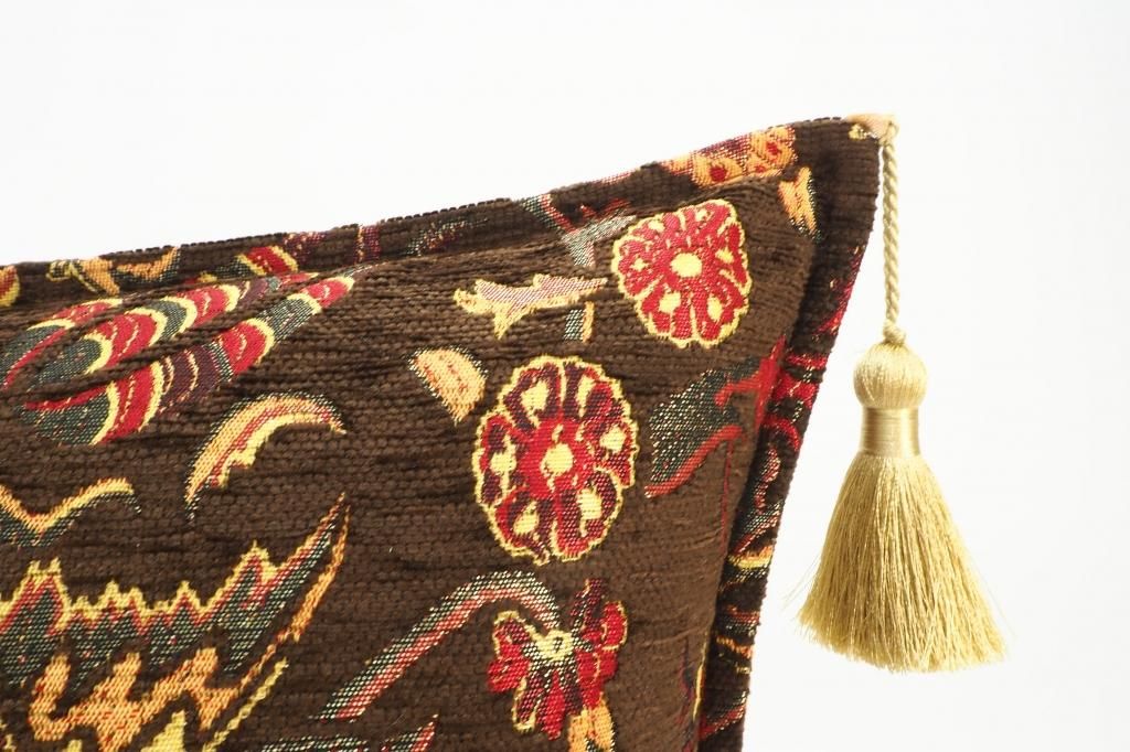 トルコファブリッククッション60x40cm ブラウン チューリップ&カーネーションデザイン