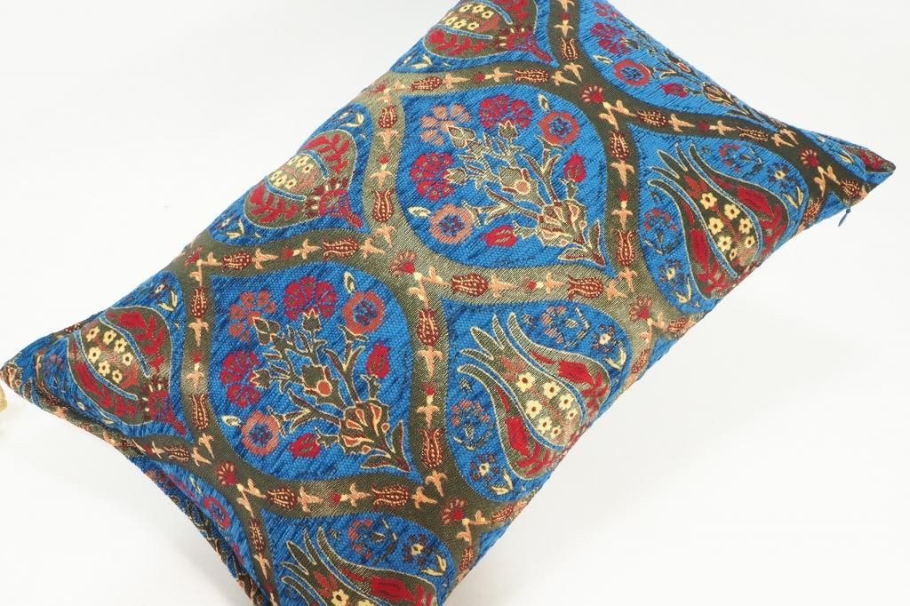 トルコファブリッククッション60x40cm ネイビー チューリップ&カーネーションデザイン