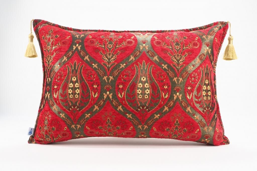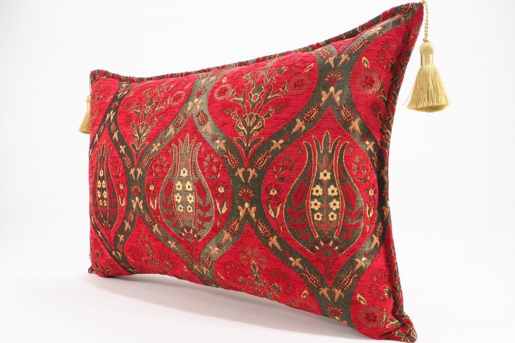 トルコファブリッククッション60x40cm レッド モロッコシェイプチューリップデザイン