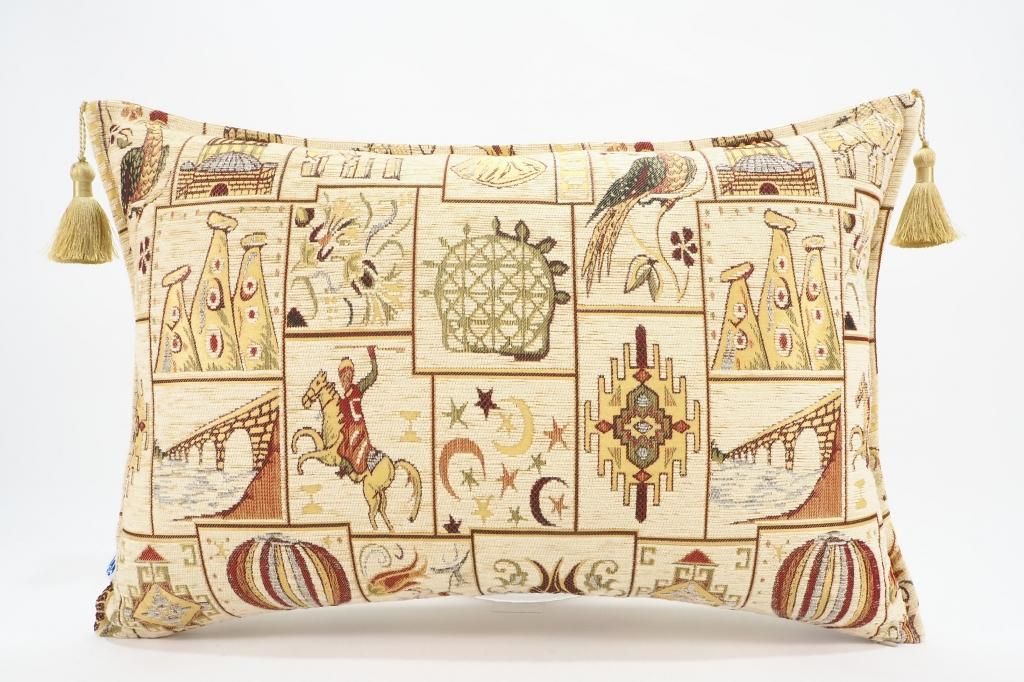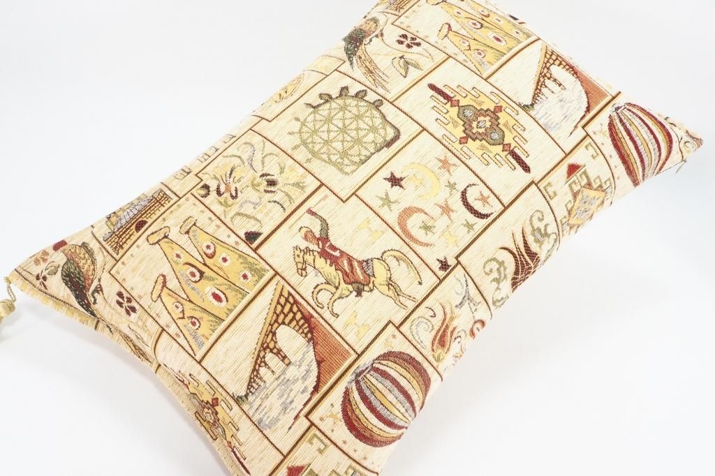 トルコファブリッククッション50x30cm ベージュ アラビアンナイトデザイン